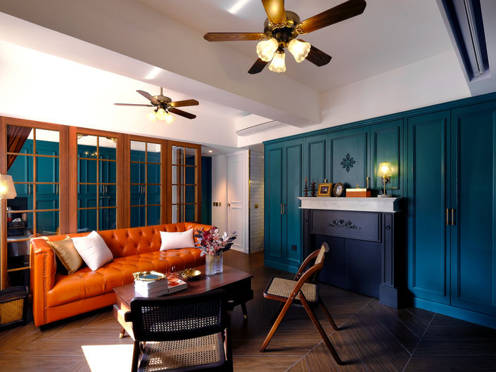 公寓的設計採用了他們最喜歡的顏色——深綠色和橙色,分別劃分了臥室和客廳,各自體現了不同的風格:英國風格和伊斯蘭風格。這種組合創造了一個現代而又優雅的生活空間,融合了復古元素,營造出寧靜、微妙和舒適的氛圍。